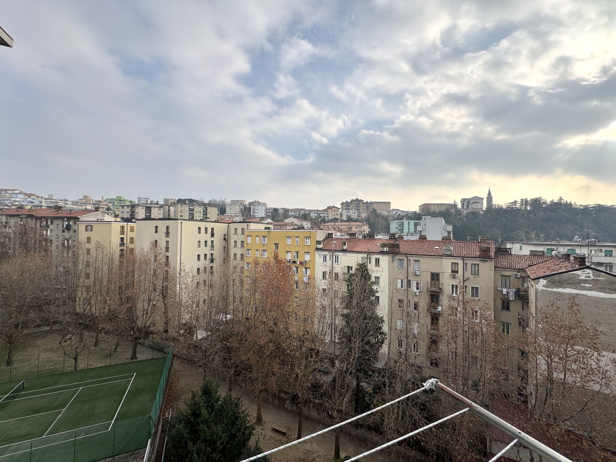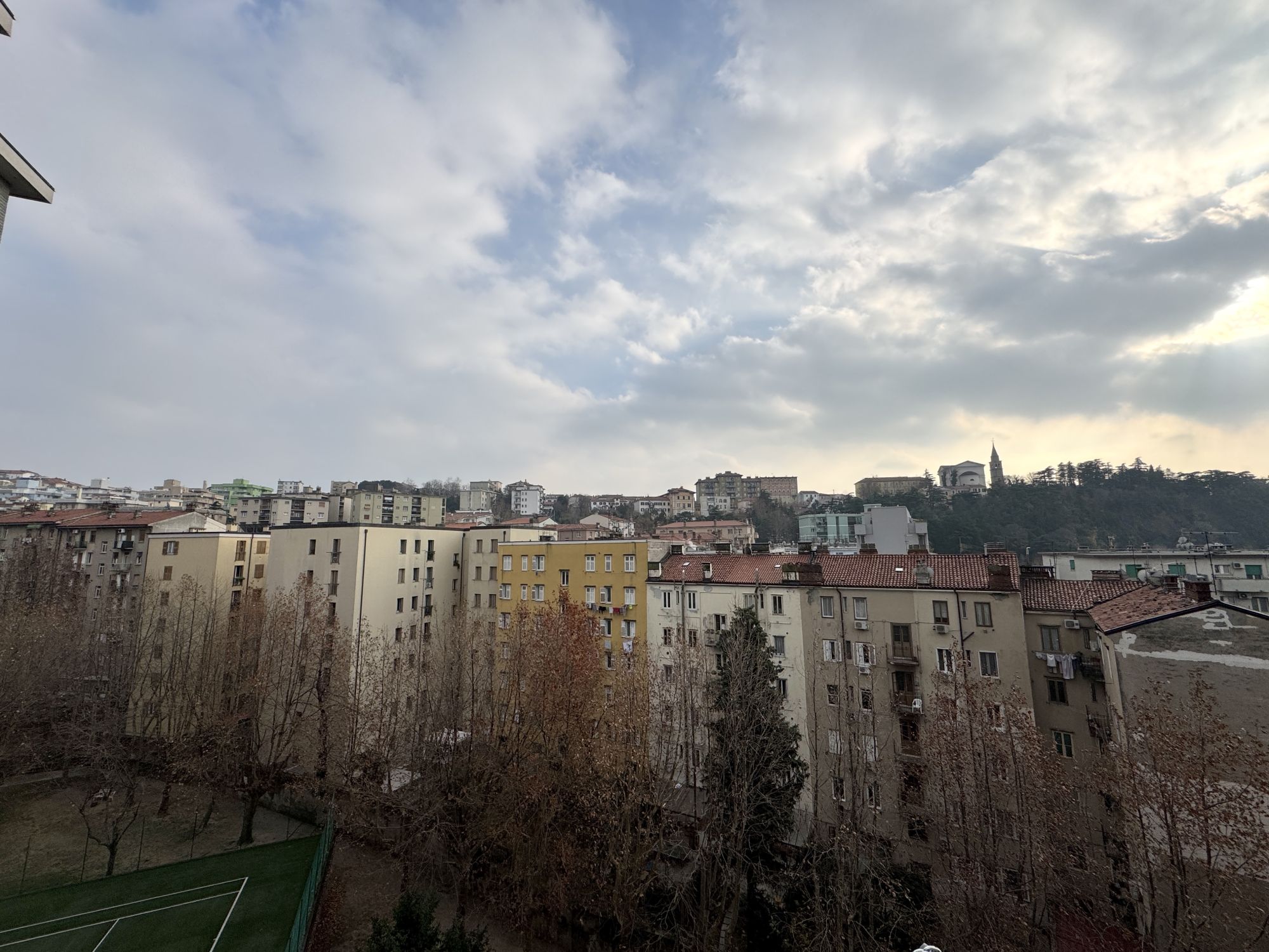 VIA CAPODISTRIA PIANO ALTO con ascensore, in signorile complesso dotato di campi da tennis, alloggio di mq 82 composto da soggiorno con cucinotto e terrazzo, 2 stanze, bagno, ripostiglio e atrio di ingresso. Grazie all’elevata altezza di piano, è soleggiato, tranquillo e panoramico. Viene consegnato arredato come da foto. Richiesta 690+120. Classe energetica in fase di definizione. Studio Immobiliare Benedetti tel. 040/3476251 orario lu-ve 9-12 e 15.30-18.30