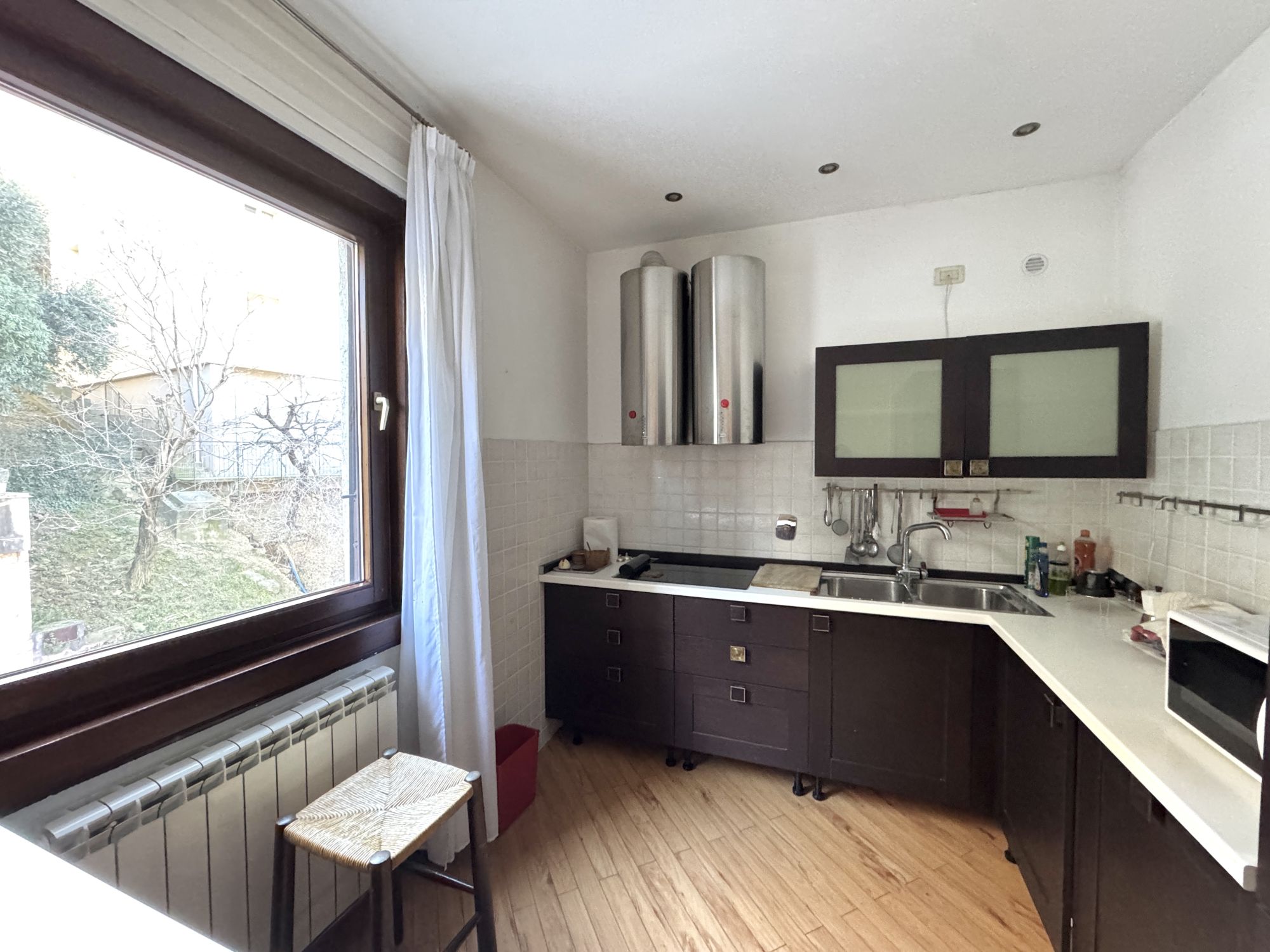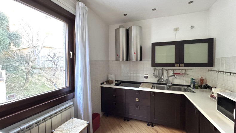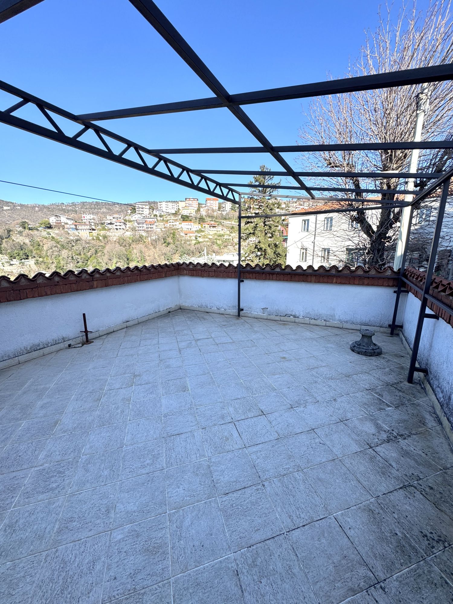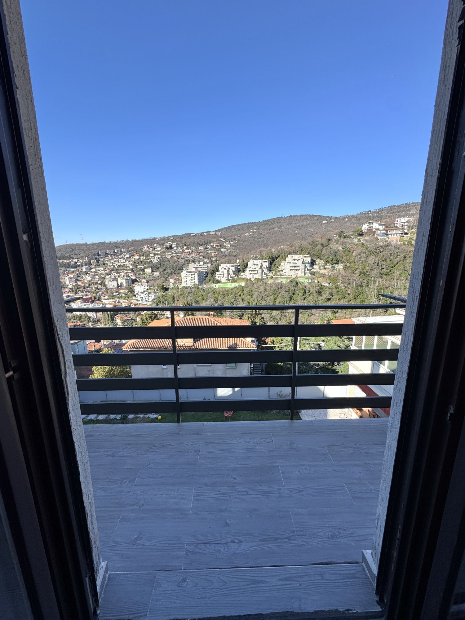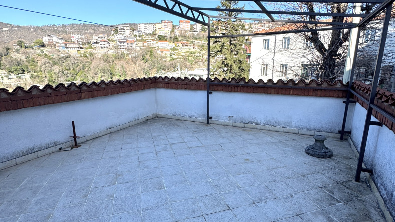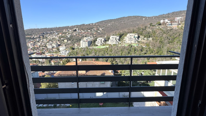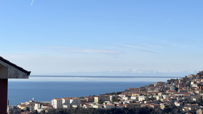 COMMERCIALE in casa bifamiliare, appartamento di mq 80 al piano superiore, composto da salone, ampia cucina a vista, matrimoniale, bagno, ingresso, terrazzo abitabile separato, posto auto scoperto. Dal balcone del soggiorno, c'è una gradevole vista panoramica, con ampio scorcio mare. L'alloggio viene consegnato arredato, come da foto. E' soleggiato, tranquillo e servito dai mezzi pubblici. E' dotato di riscaldamento autonomo e porta blindata. Adatto al massimo per 2 persone. Richiesta 800+100 Euro/mese. Studio Immobiliare Benedetti tel. 040/3476251 orario lu-ve 9-12 e 15.30-18.30.