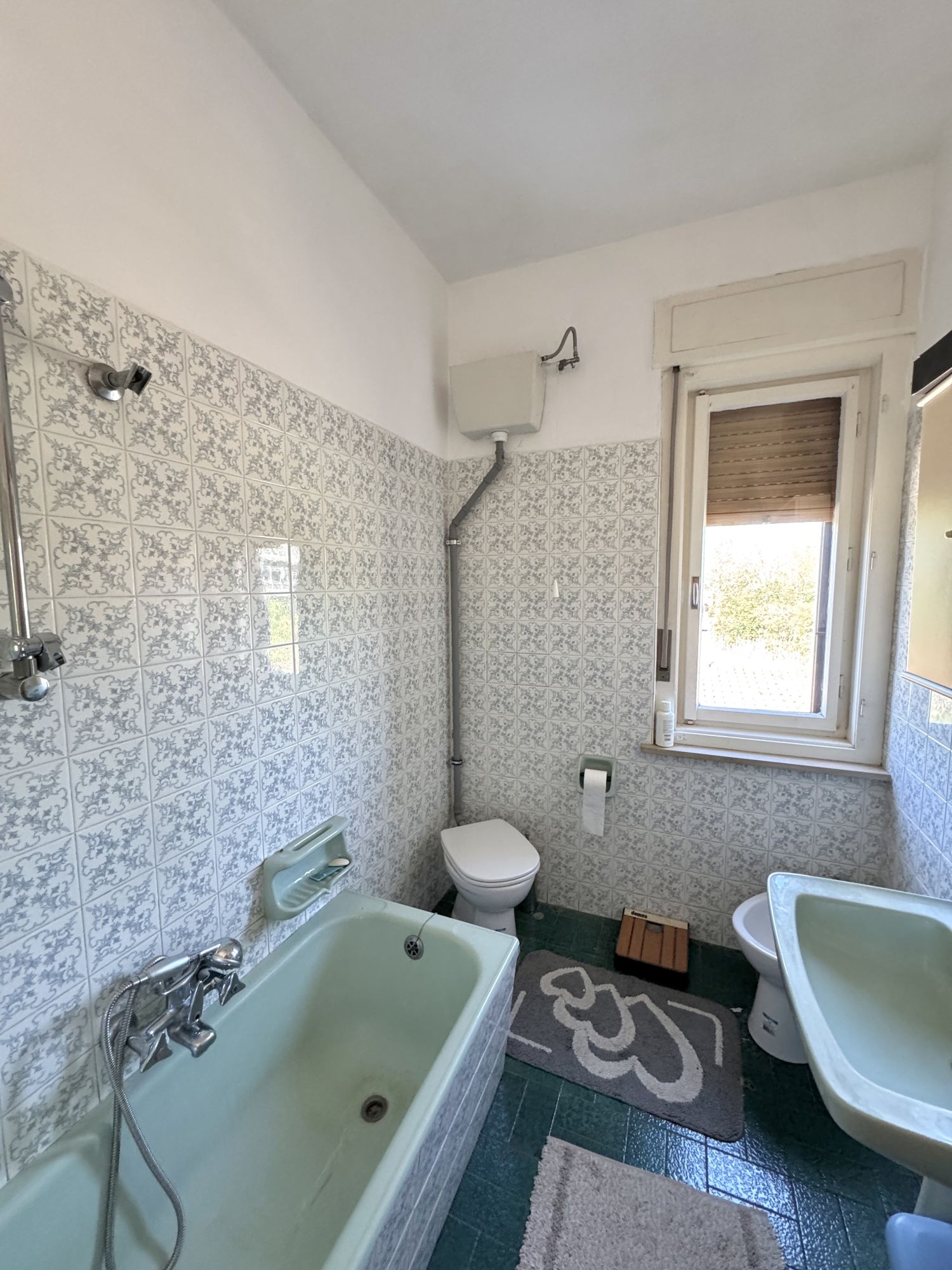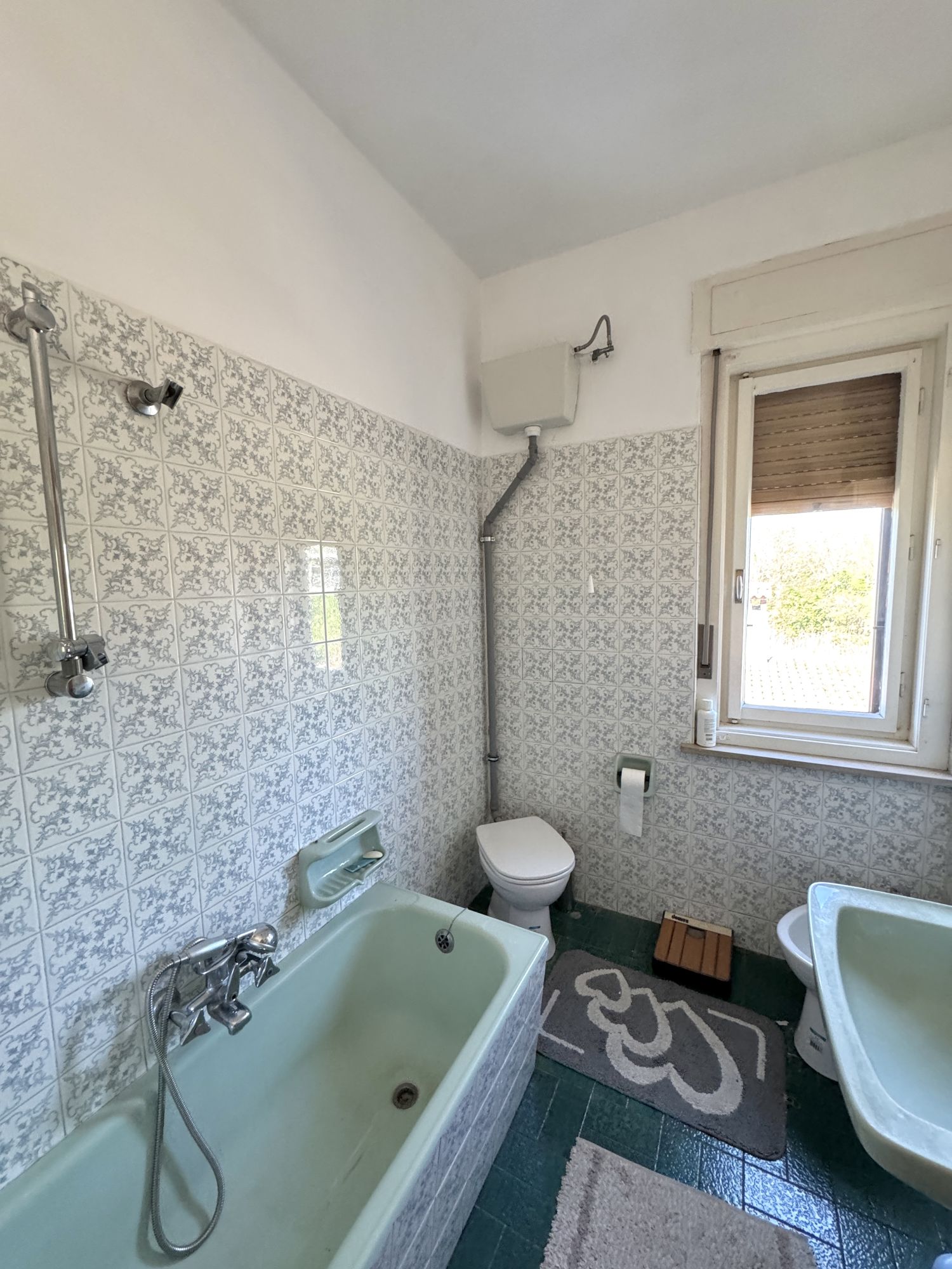 MUGGIA STRADA PROVINCIALE FARNEI in casa bifamiliare, alloggio al piano superiore di mq 90, composto da ampio soggiorno con terrazzo abitabile, comoda cucina, 2 generose stanze, bagno, ingresso, e soffitta/cantina soprastante. Dispone anche di giardino di circa mq 150, 2 posti auto scoperti, e una graziosa tavernetta separata, con accesso dal giardino, completa di caminetto e funzionale cucinetta adiacente. L’alloggio necessita di lavori di riammodernamento. Dispone di riscaldamento a gasolio, in comune con l’appartamento sottostante. E’ soleggiata, tranquilla, ma è presente la grande viabilità, il cui rumore però non disturba particolarmente, in quanto sopraelevato. Richiesta 175.000 tratt. Studio Immobiliare Benedetti tel. 040/3476251 orario lu-ve 9-12 e 15.30-18.30.